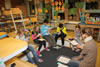 Sehr beliebt ist die Station mit praktischen Übungen. Benni zeigt, dass er auf Kommando sogar schlafen kann und seine Umrisse abzeichnen lässt.